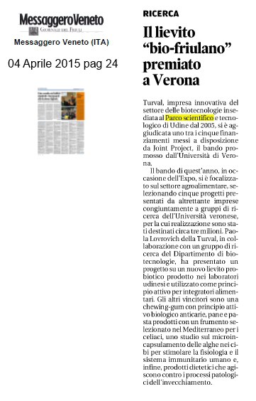 Paola Lovrovich of Turval in partnership with a research group of the Biotechnology Department , submitted a draft of a new Probiotic Lactic Yeast® produced in these laboratories site in Udine and used as an active ingredient for dietary supplements.
