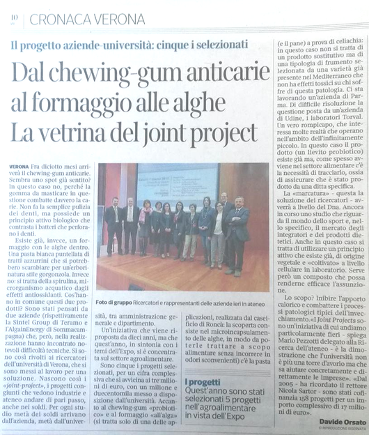 Particular success has found the Laboratories Turval of Udine project in collaboration with the University of Verona dip. Biotechnology, as well as the IGA located at the Science and Technology Park of Udine (University of Udine).