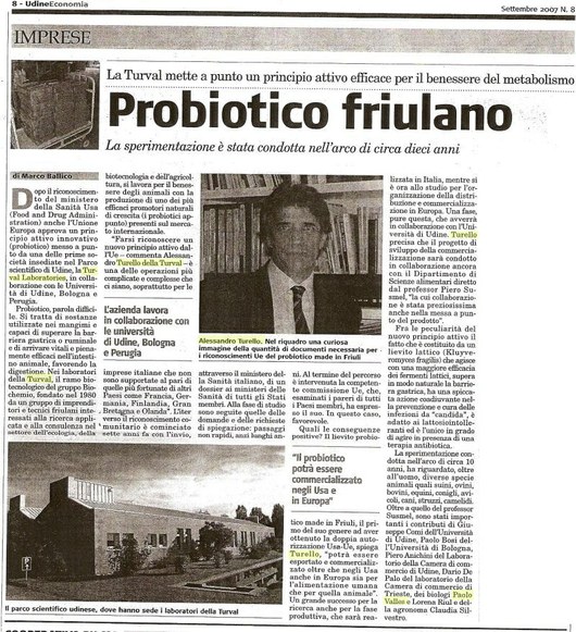 kluyver, Laboratori Turval, Turval Laboratories, Alessandro Turello, Parco scientifico e tecnologico Luigi Danieli, Unione Europea, Università di Bologna, Università di Perugia, Ministero della sanità americano, Food and drug administration, lievito probiotico, Kluyveromyces, candida, Piero Susmel, Giusepe Comi, Paolo Bosi, Piero Anchini, Camera di commerco di Udine, Dario De Paolo, Camera di Commerio di Trieste, Paolo Valles, Lorena Riul, Claudia Silvestr, Marco Ballico